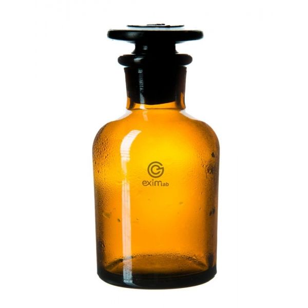 Склянка для реактивов с притертой пробкой используется для хранения различных химических веществ.