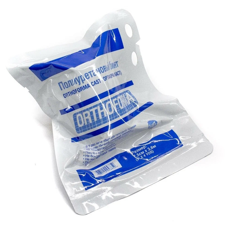 Бинт полиуретановый предназначен для изготовления жестких иммобилизирующих повязок (вместо гипсовых повязок) при травмах для ортопедической коррекции и после оперативных вмешательств. Современный полиуретановый бинт в отличие от гипсового более легкий, влагостойкий, воздухопроницаемый и имеет низкую рентгеноконтрастность. Полиуретановый бинт не вызывает аллергии и не токсичен. Способность «дышать» делает его более комфортным и практически незаменимым при наложении на большие участки конечностей, так как не возникает мацерации и зуда. Повязка из материала не препятствуют применению водных процедур, а сам полиуретановый бинт не боится влаги.Полиуретановый бинт накладывается значительно быстрее и легче, чем гипс. Его способность растягиваться позволяет делать повязки идеально по контуру конечностей с учетом всех костных выступов (локоть, лодыжка, пятка и др.). Применяется с использованием специального подшинового чулка во избежание непосредственного контакта с кожей и сдавливания мягких участков тканей.