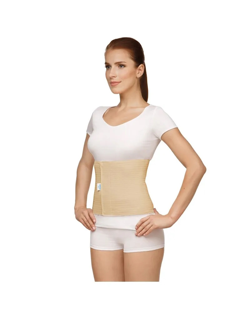 Эластичный послеоперационный бандаж П-1702 разгружает область послеоперационной раны, что способствует стабильности формирующегося послеоперационного рубца. Препятствует образованию и прогрессированию вентральных грыж. Уменьшает болевые ощущения, облегчает двигательный режим и раннюю мобилизацию. Создает равномерную эластическую компрессию, не препятствуя дыханию.