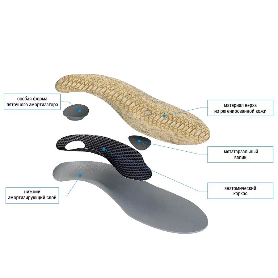 Каркасные стельки Оптима 10Р предназначены для лечения продольного, поперечного и комбинированного плоскостопия и профилактики статических деформаций стопы. Основой стельки является пружинящий каркас из сверхпрочного пластика, удерживающий стопу в правильном положении. Выкладка поперечного свода (валик Зейца) из мягкого несминаемого латекса правильно перераспределяет нагрузку в переднем отделе стопы. Амортизирующая вставка в области пятки снижает ударную нагрузку при ходьбе. Покрытие из регенерированной кожи итальянского производства, специально разработанной для вкладных стелек, позволяет ноге «дышать», впитывает излишки влаги. Нижнее покрытие стелек из вспененного материала предохраняет стопу от переохлаждения и перегрева, приформовывается по стопе в процессе носки. Стельки занимают минимум пространства в обуви.