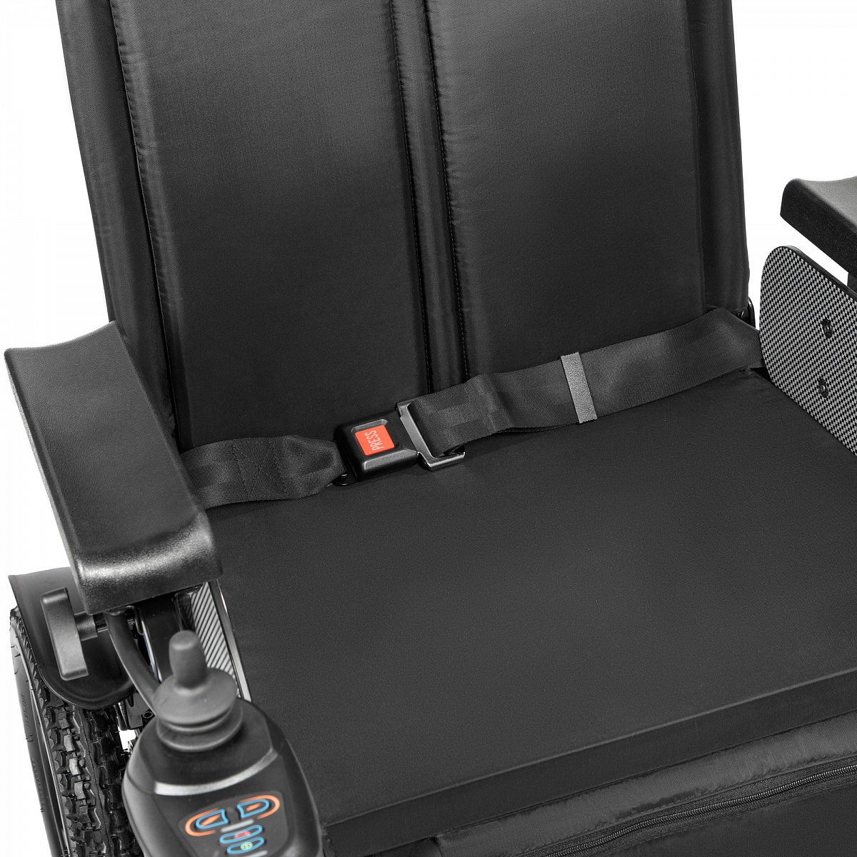 Инвалидная электрическая кресло-коляска Ortonica Pulse 150. Перемещение коляски осуществляется с помощью джойстика, а также может осуществляться сопровождающим лицом.