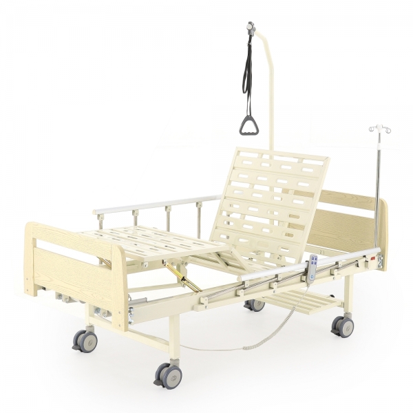Кровать электрическая Мед-Мос DB-7(МЕ-2028Д-00) с гибридным приводом и возможностью удлинить ложемент на 10.5 см. Гибридный привод позволяет управлять кроватью без электричества. Каркас и ложе выполнены из прочной стали, покрытой антикоррозийным покрытием, выдерживают нагрузку до 250 кг. В коплект поставки входят складные боковые ограждения, полка для гигиенического судна/обуви, прикроватный столик, крючки для мочеприемника.