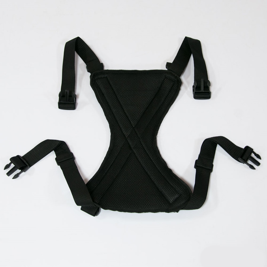 Стабилизатор спины оснащен тремя поддерживающими подушками, фиксирующими туловище в одном положении, а также страховочным ремнем для безопасности. Стабилизатор регулируется в зависимости от размеров туловища ребенка: максимальная ширина между боковыми фиксирующими подушками – 32 см.